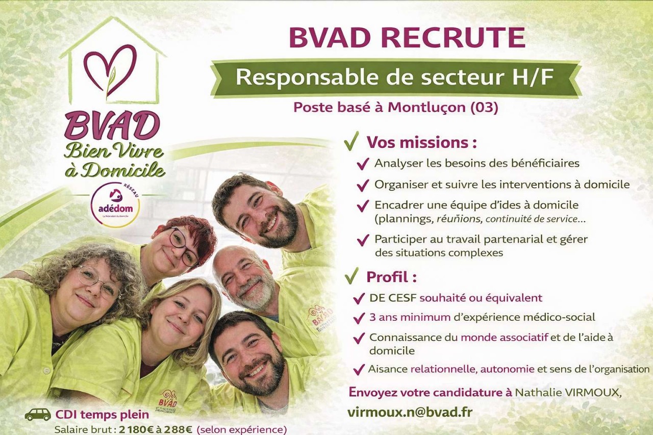 BVAD recherche un(e) responsable de secteur.